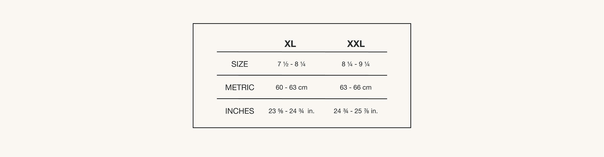 • Plus de 25" (ou 63,5 cm) = taille XXL.
